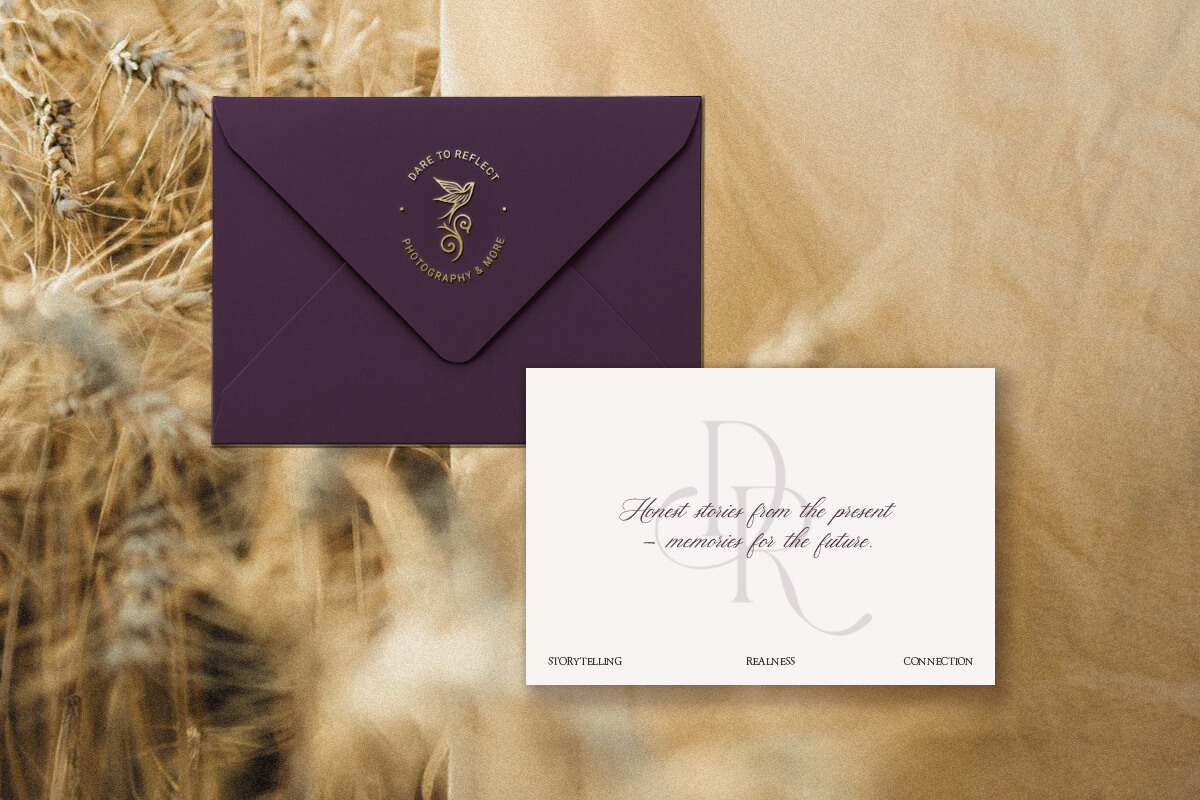 A Dare to Reflect identitása a természet ritmusából és a fotózás bensőséges pillanataiból merít inspirációt. A cél egy olyan logórendszer megteremtése, ami visszaadja Timi látásmódjának mélységét és rétegzettségét.